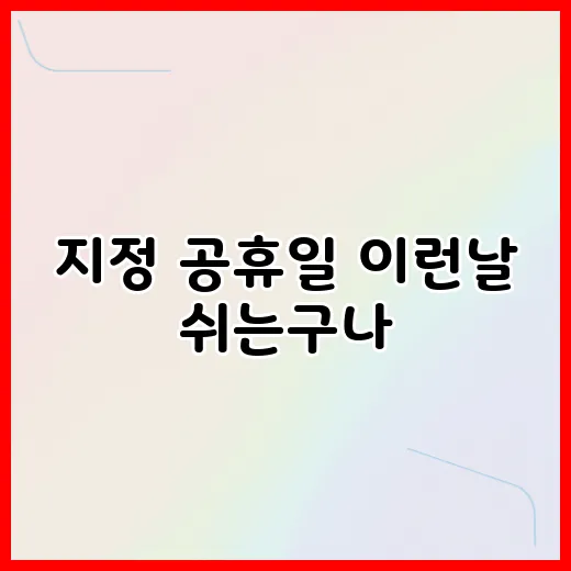 지정 공휴일에는 설날, 추석, 국군의 날, 성탄절 등이 포함됩니다. 매년 날짜가 바뀌기도 하므로, 공식 일정표를 참고하는 것이 좋습니다.
